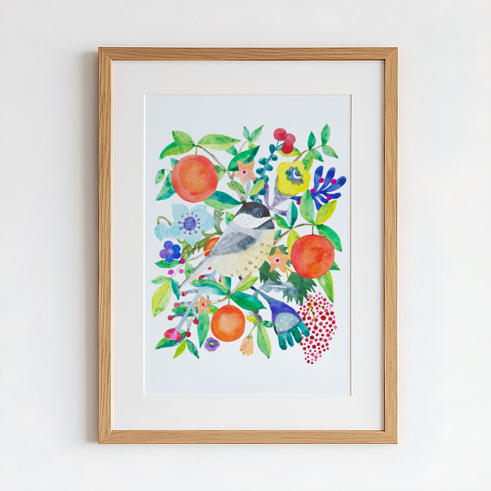 Chickadee & Orange Original Painting - 12"x16"
