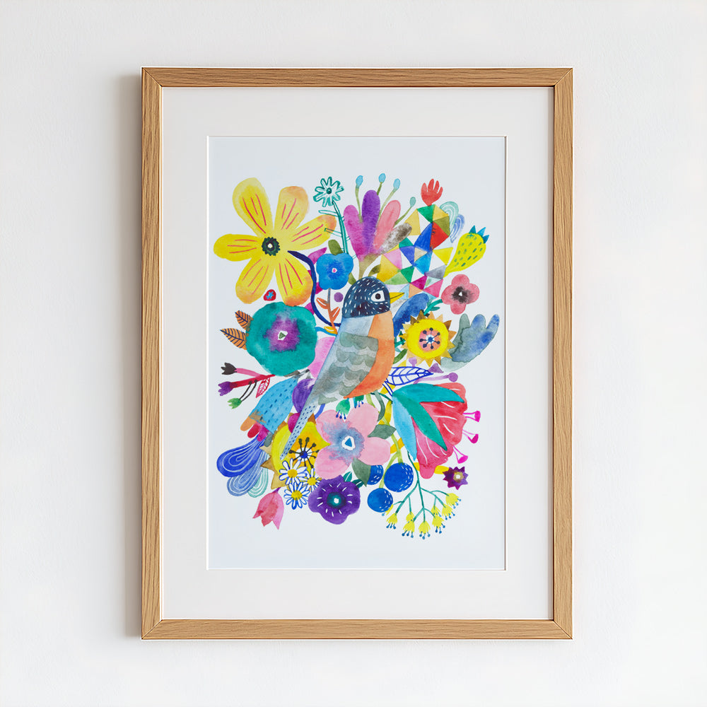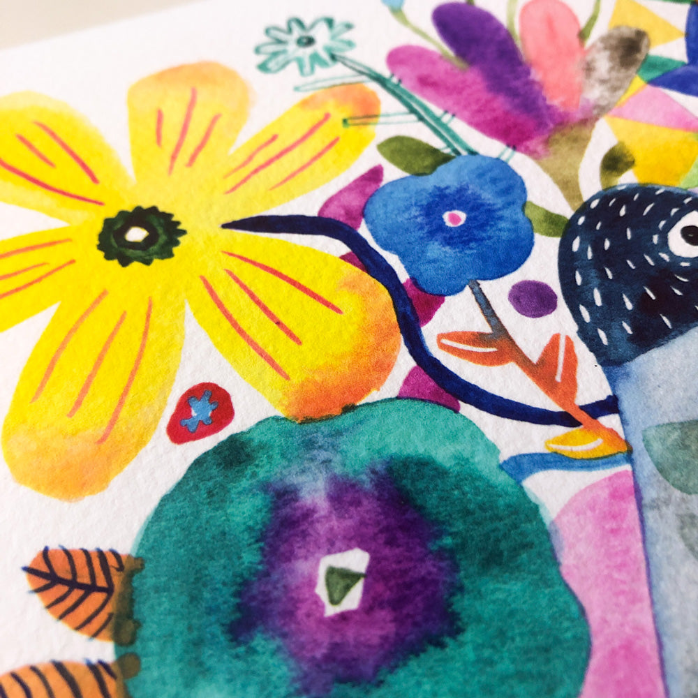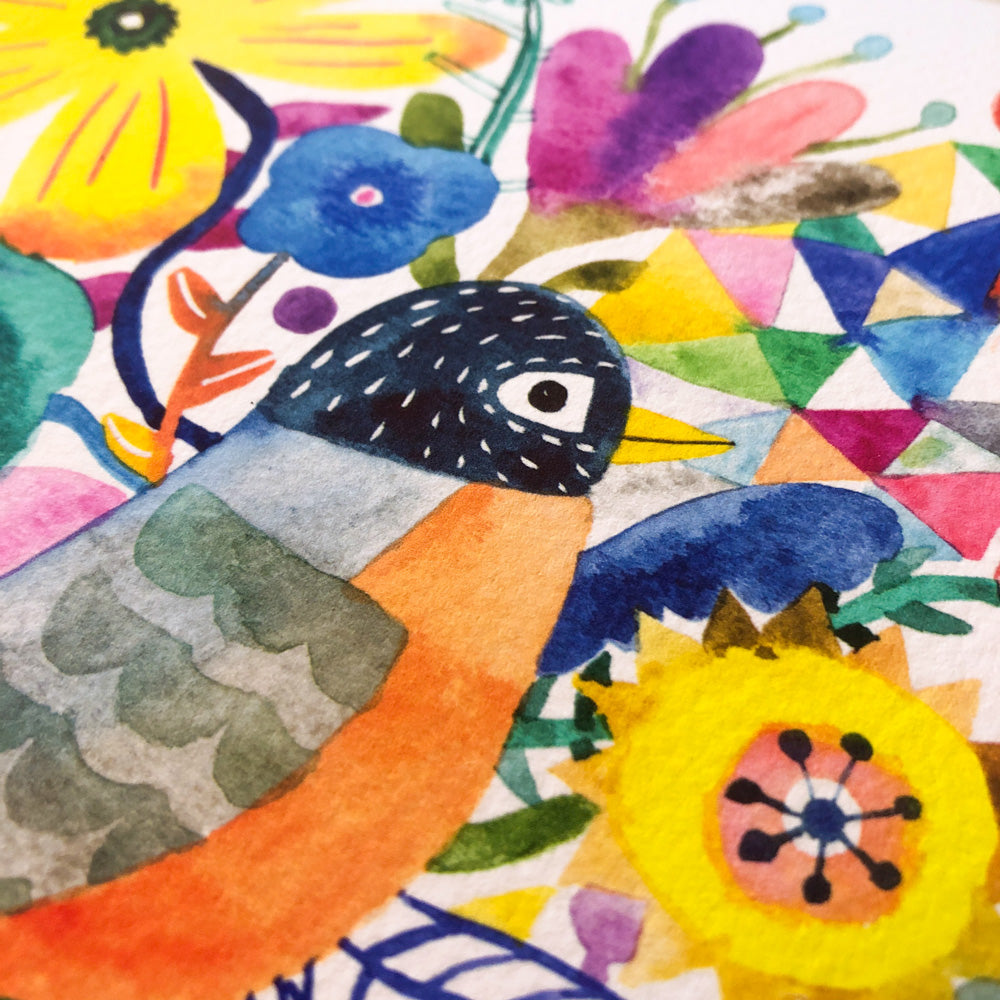- One of a kind original watercolor & gouache (opaque watercolor) painting of a robin on thick watercolor paper.